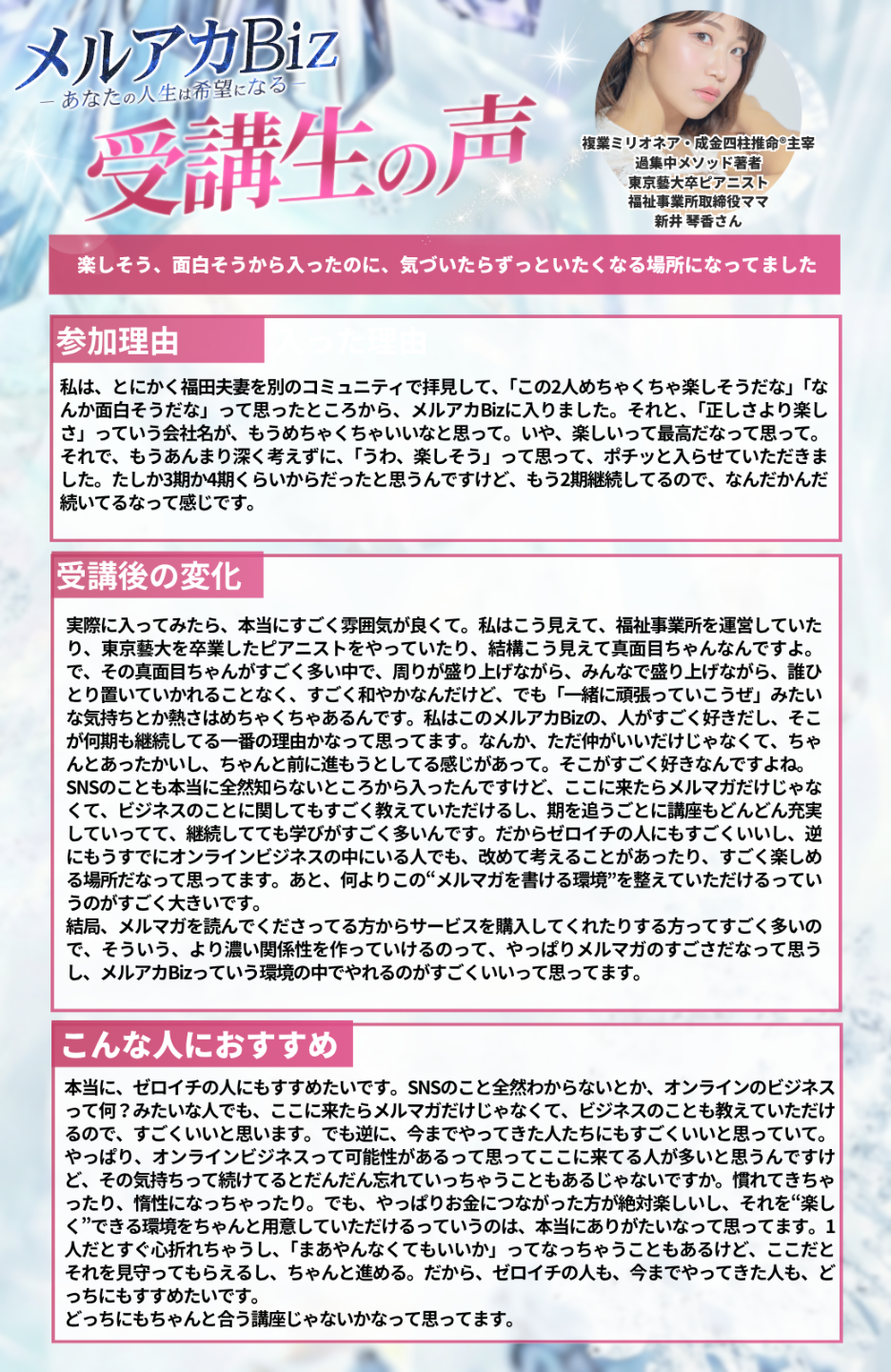 複業ミリオネア・成金四柱推命®︎主宰過集中メソッド著者東京藝大卒ピアニスト福祉事業所取締役ママ新井 琴香さん